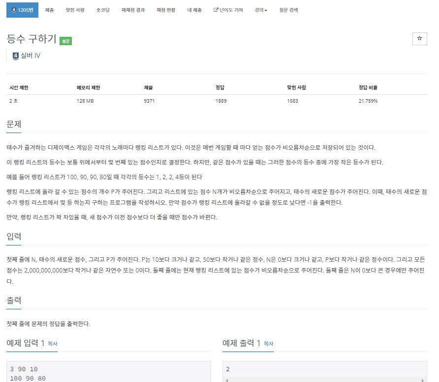 1205번: 등수 구하기