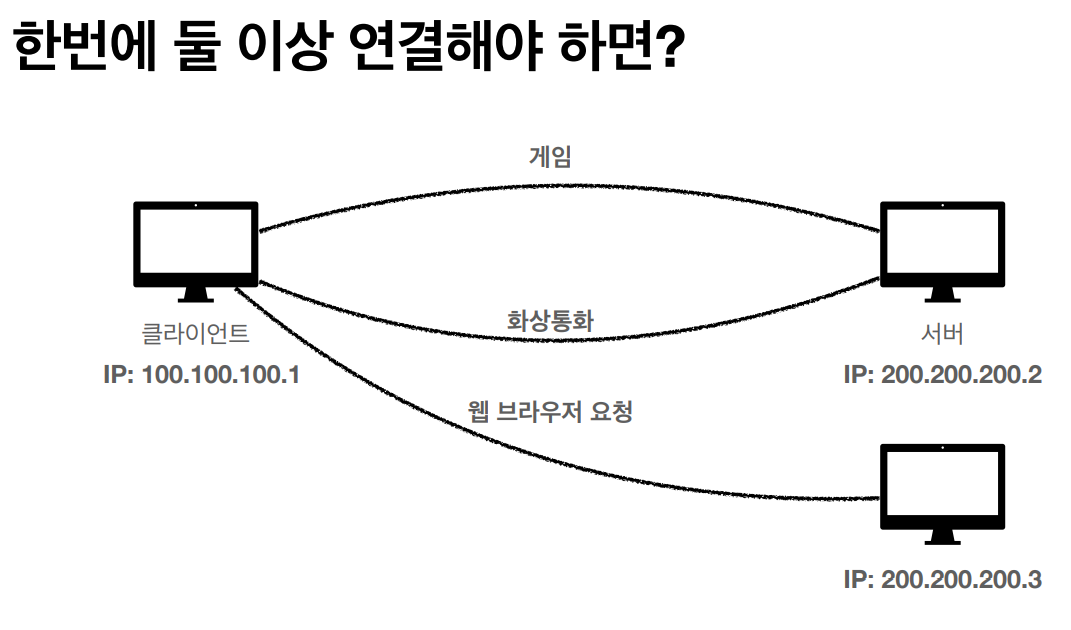 우리가 게임도 하고 화상통화도 하고 웹 브라우저 요청도 하는데 IP주소는 하나이다.