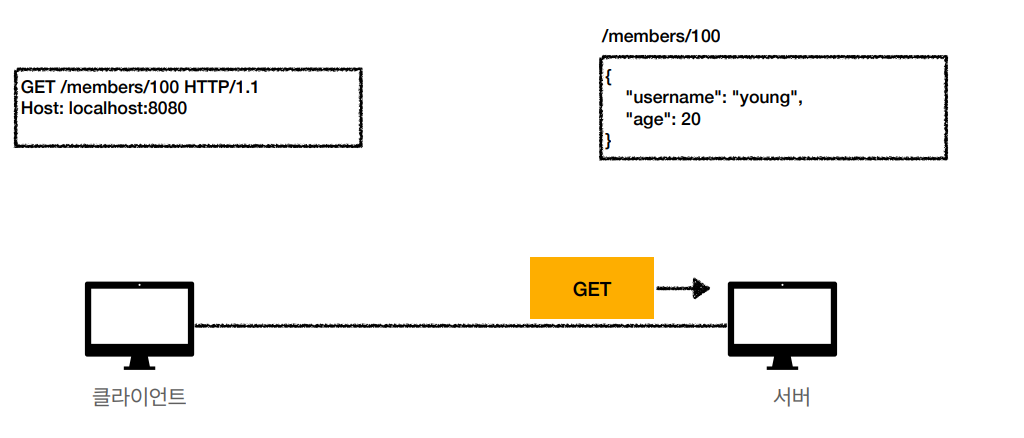 * GET : 리소스 조회, 서버를 전달하고 싶은 데이터를 query를 통해 전달한다.