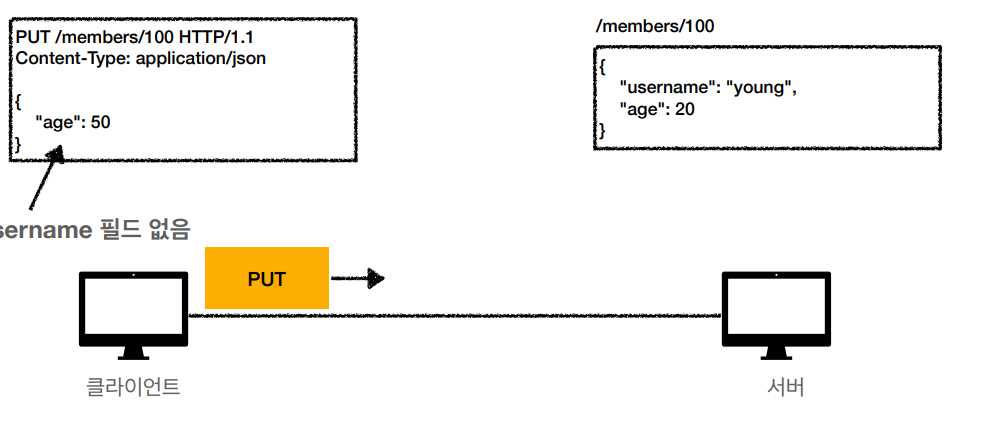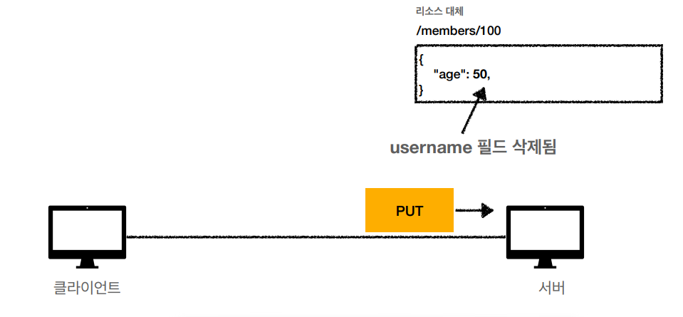 - PUT : 리소스를 대체, 해당 리소스가 없으면 생성