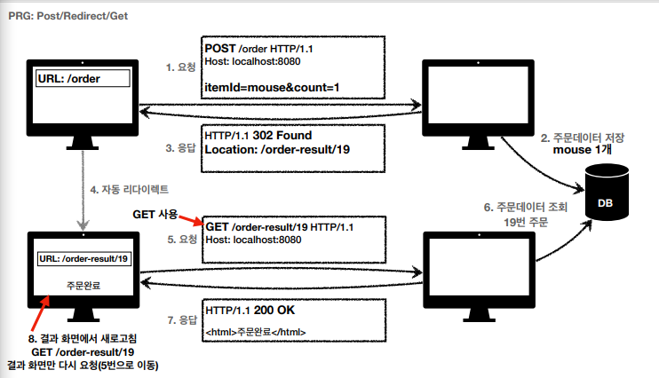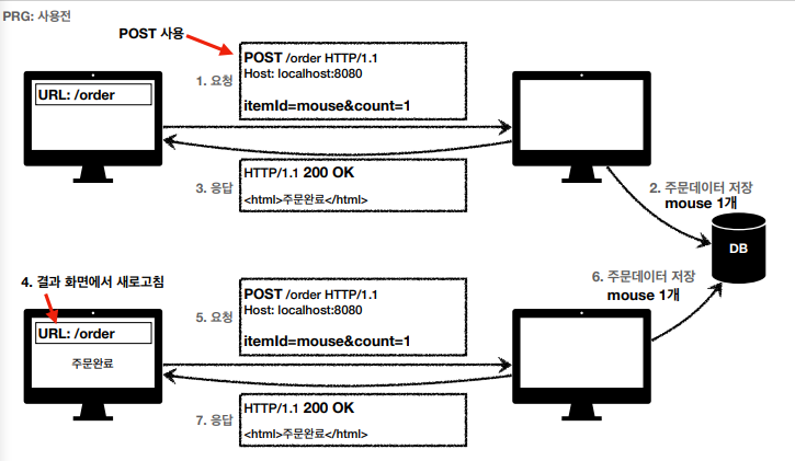 처음 주문할 때 POST를 사용한 이후는 새로고침을 하면 GET으로 요청하게 하는 것이다.