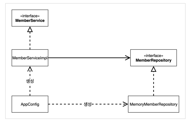 설계 변경으로 인해서 MemberServiceImpl은 MemoryMemberRepository를 의존하지 않는다.