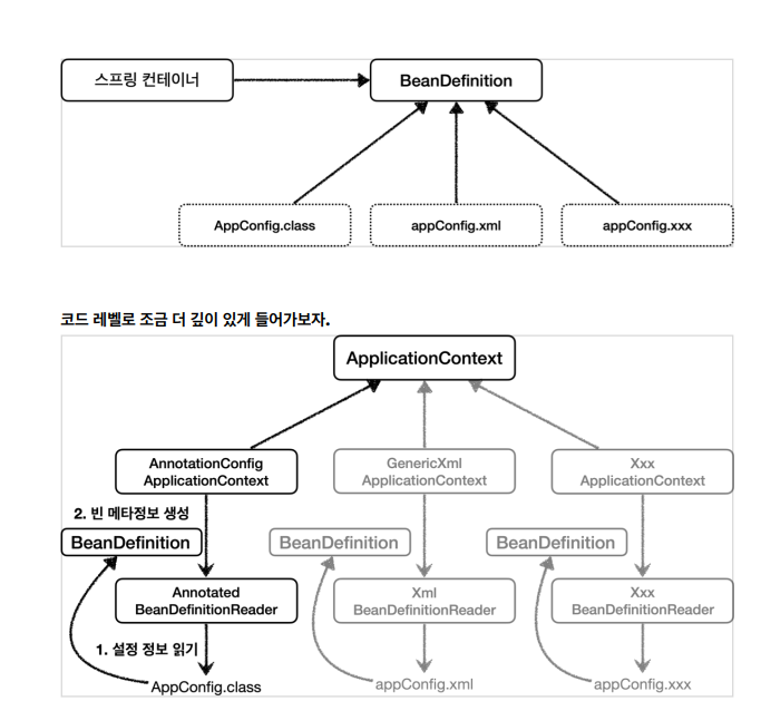 XML이든, 자바든 해당 코드를 읽어서 BeanDefinition을 만든다.