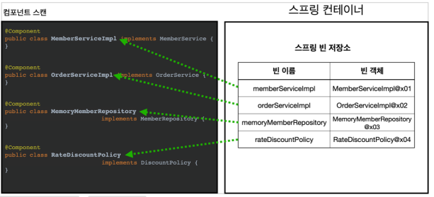 @ComponentScan은 @Component가 붙은 모든 클래스를 스프링 빈으로 등록한다.
