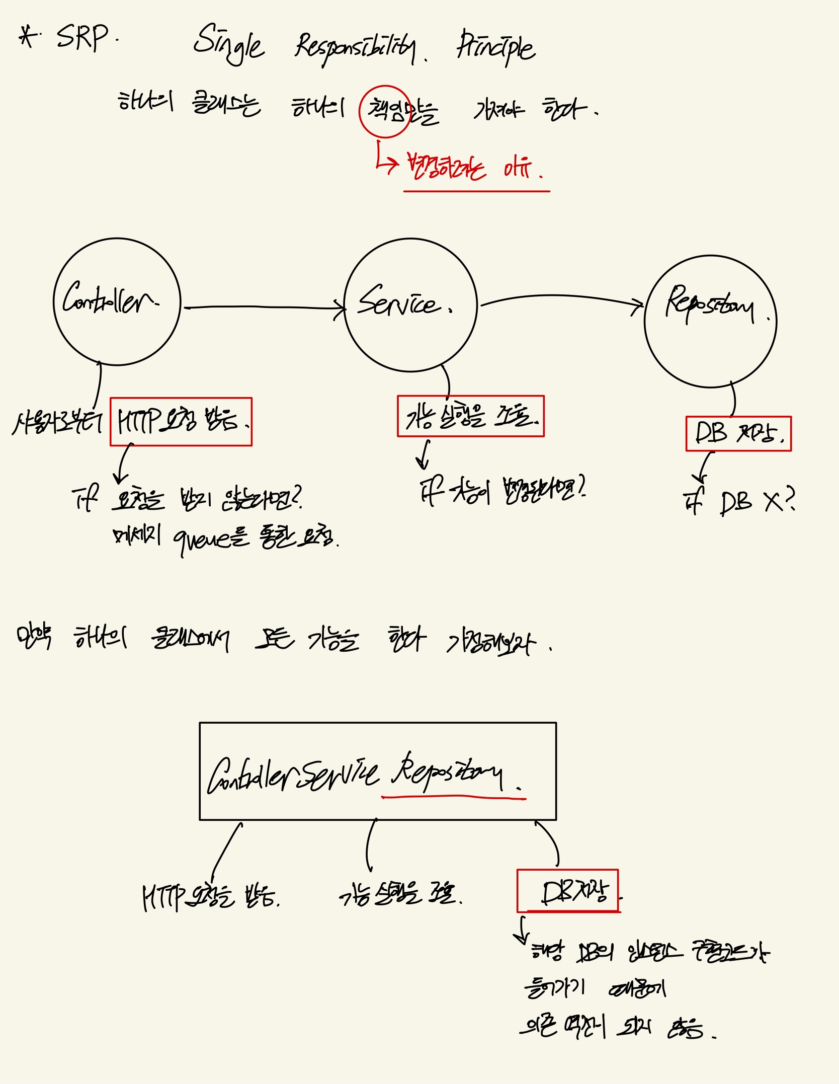 SRP 원칙이 깨져있는 코드를 예시로 이해해보자.