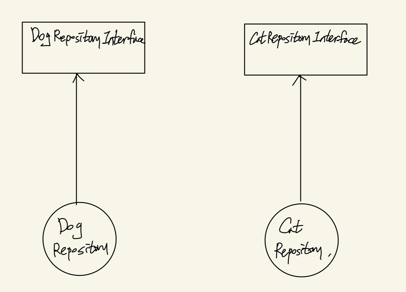 지금 Repository에 implements 구현한 Dog와 Cat이 있다 해보자.