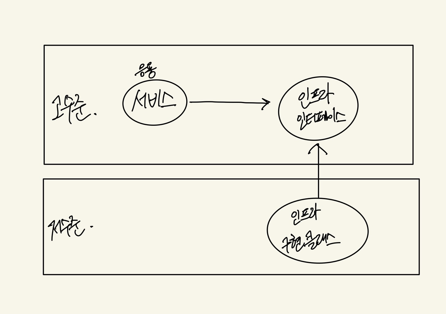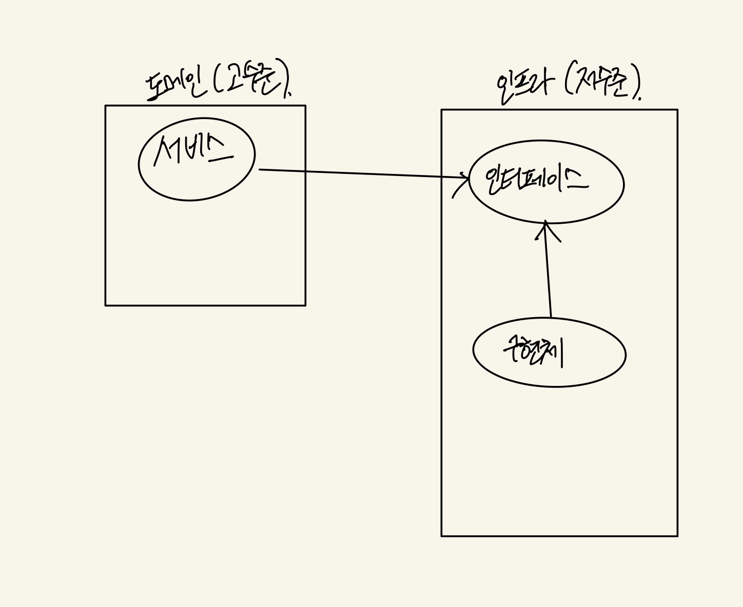 - 인프라 : 논리적 개념 표현 보다는 실제 구현 다룸 (RDBMS 연동, 메세지 큐 송수신, 데이터 연동..)
