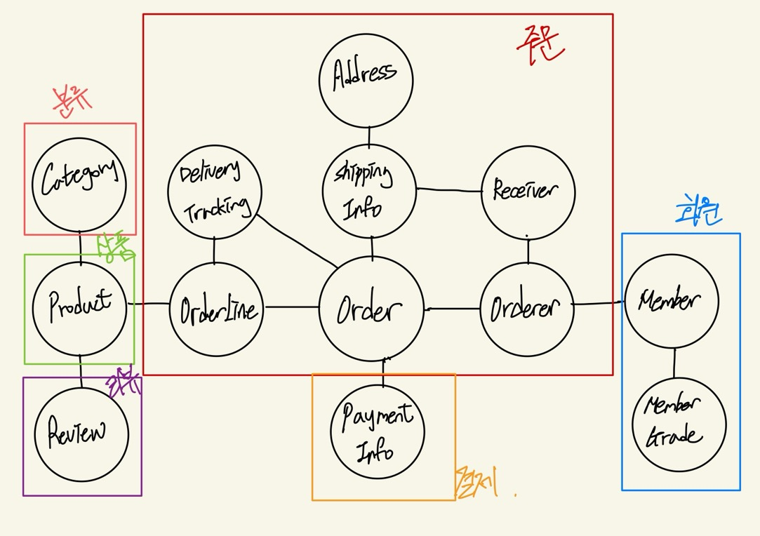 흔히 'A가 B를 갖는다'로 설계할 수 있는 요구사항이 있다면 A와 B를 한 애그리거트로 묶어서 생각하기 쉽다.