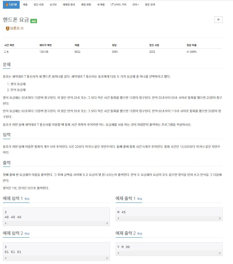 1267번: 핸드폰 요금
