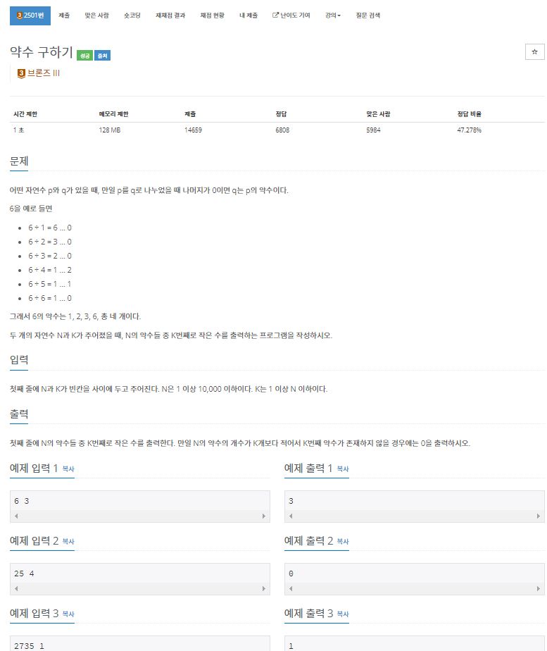 약수들 다 구해서 배열에 넣어놓고 조건에 맞게 출력하면 될듯..?