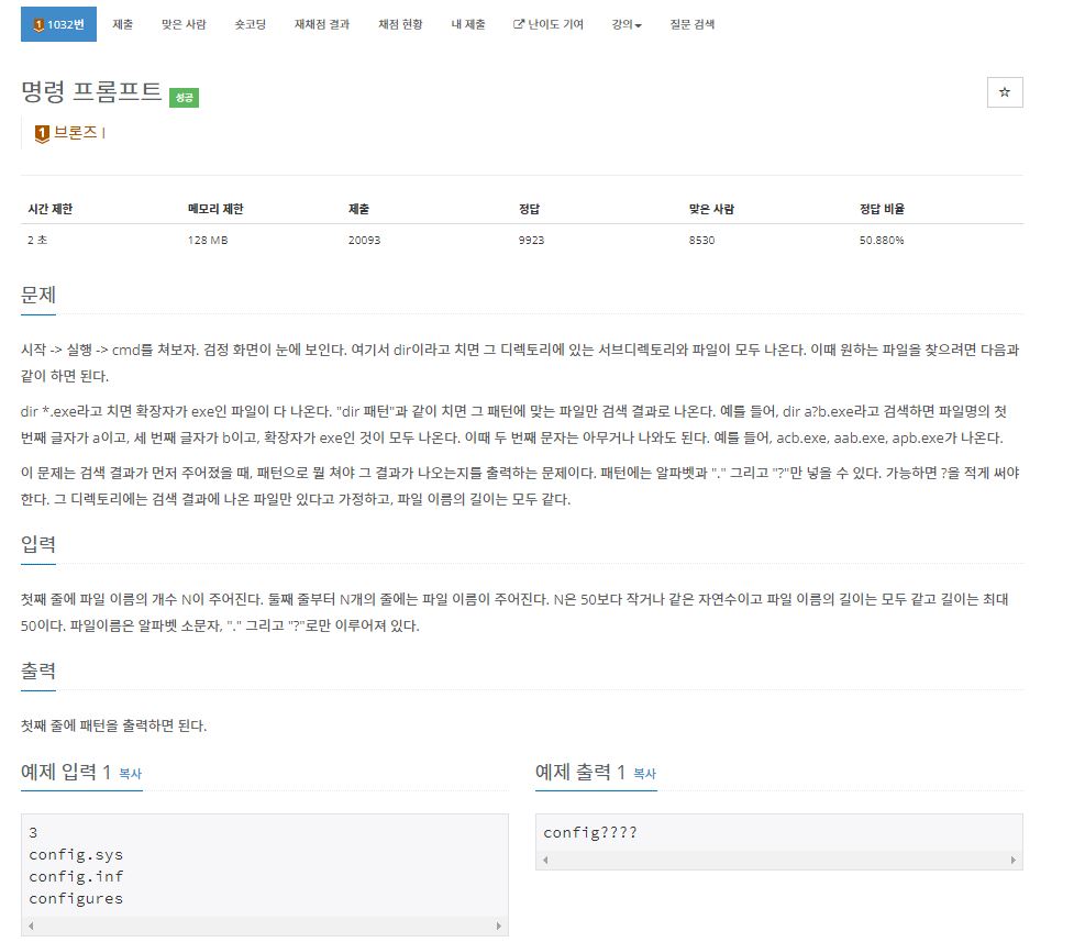 첫째 줄에 파일 이름의 개수 N이 주어진다. 둘째 줄부터 N개의 줄에는 파일 이름이 주어진다. N은 50보다 작거나 같은 자연수이고 파일 이름의 길이는 모두 같고 길이는 최대 50이다. 파일이름은