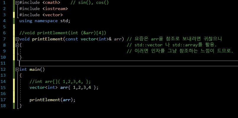 그래서 실제로는 std에 정의된 vector나 array를 활용해서 인자로 전달한다.