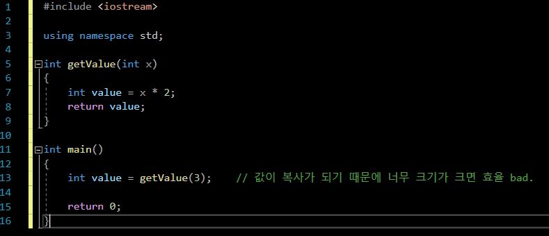 내가 이 값들을 받아 수정해서 반환하고 싶다면 참조로 받는 것이다.