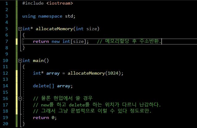 내가 주소값을 반환하고 함수가 종료되면 그 주소값이 가리키는 변수가 없어져버릴 수도 있잖아?