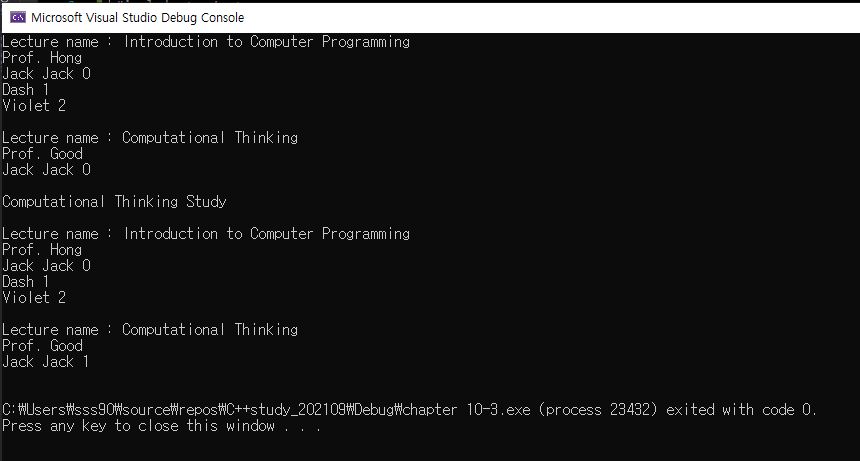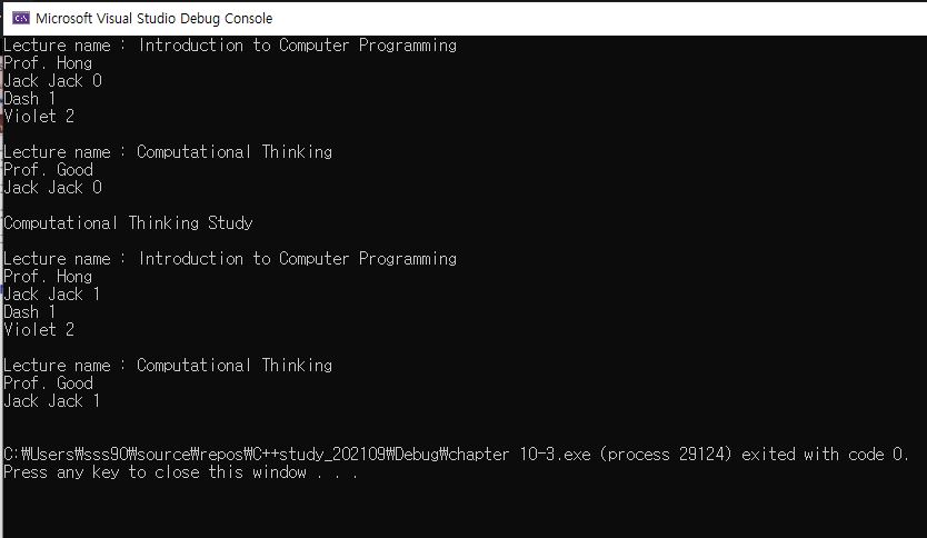 기존에 배운 구성 관계로 코드를 짠다면, 현재 "Jack Jack"이라는 학생은 동일 학생이니, 내가 lec2.study()를 한다면,