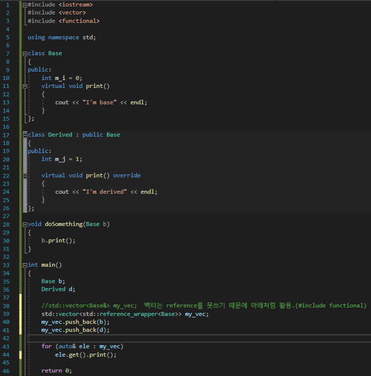 이건 유의점인데, vector를 활용할 경우 vector에선 &, 즉 reference를 활용할 수 없다.