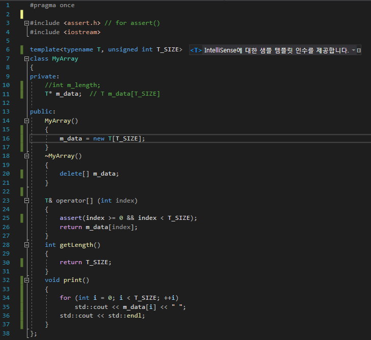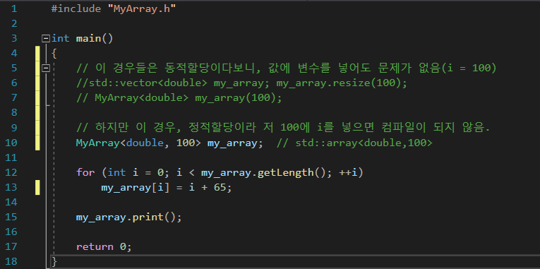 배열의 예시를 보자면, 현재 T_SIZE를 컴파일 이전에 기입했기에, 이를 코드로 구현했다.