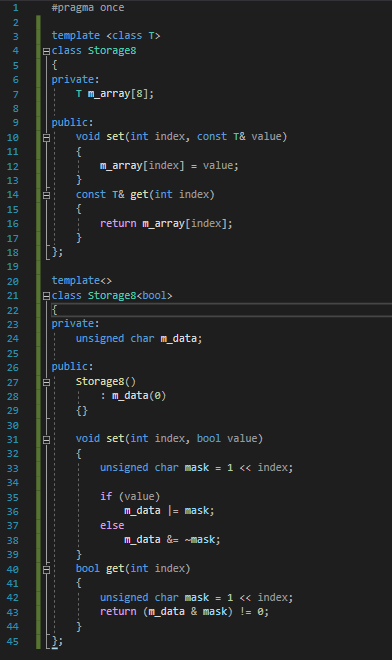 bool의 경우를 따로 specialization해줬다. 비트 마스크를 활용하고 있다.