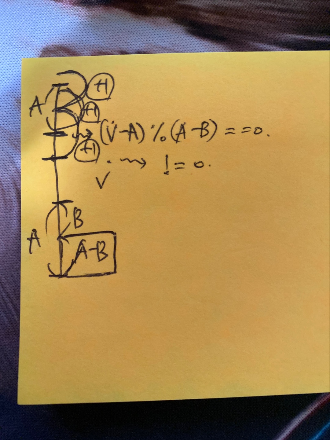 그리고 나서 (v - a)를 (a - b)로 나누었을 때 나누어떨어진다면, 그 때 + a 를 통해 맞춰주면 되므로,