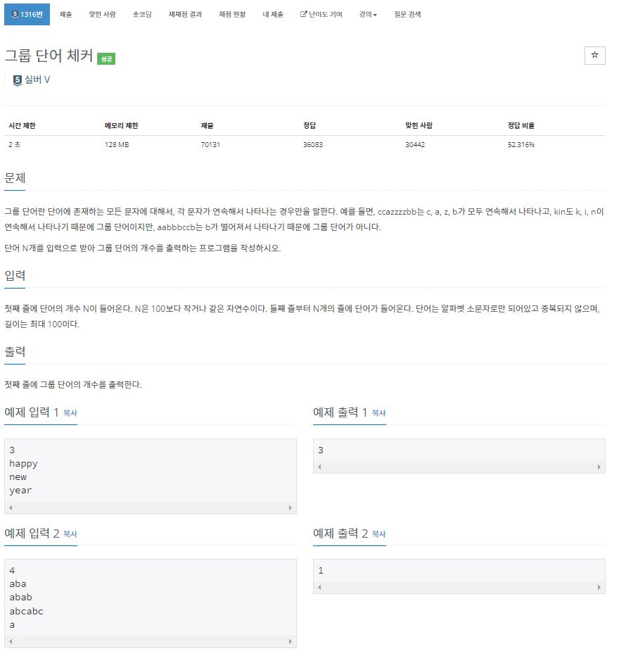 1316번: 그룹 단어 체커
