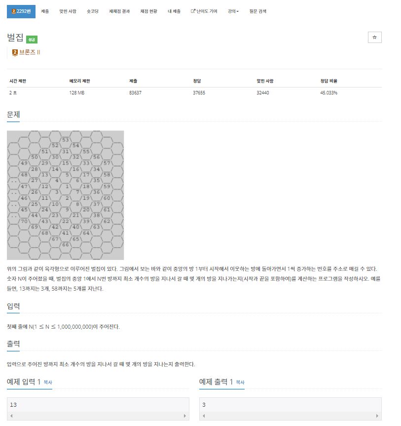 https://www.acmicpc.net/problem/2292
