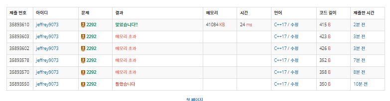 심지어 limit의 크기가 커져서 메모리 초과도 자주 났다. 정답은 결국 저렇게 해서 나오긴했지만.. 뭔가 아쉽다.