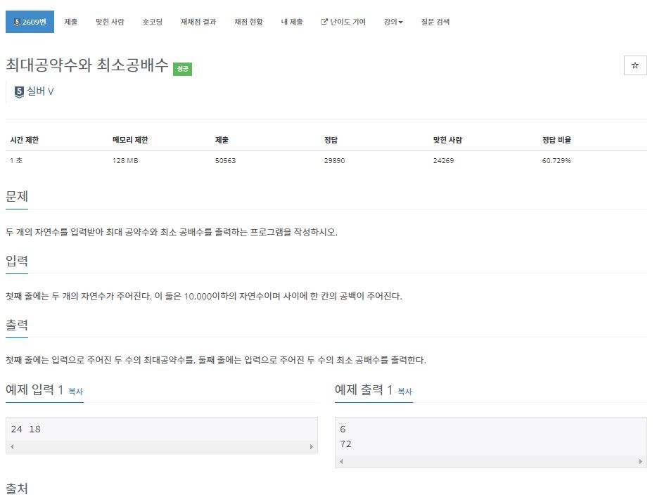 https://www.acmicpc.net/problem/2609