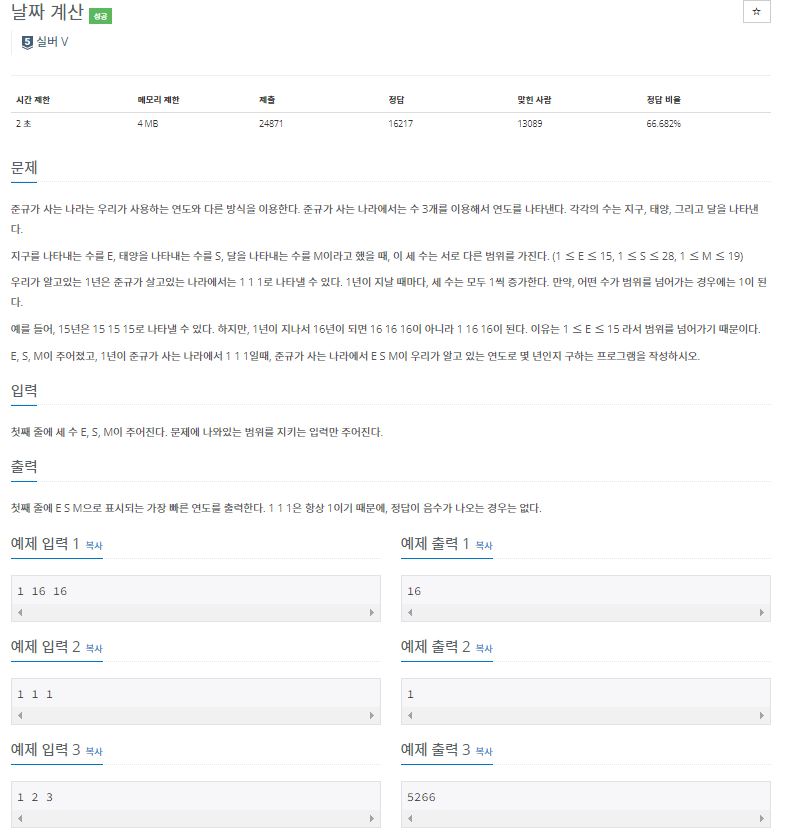 1476번: 날짜 계산