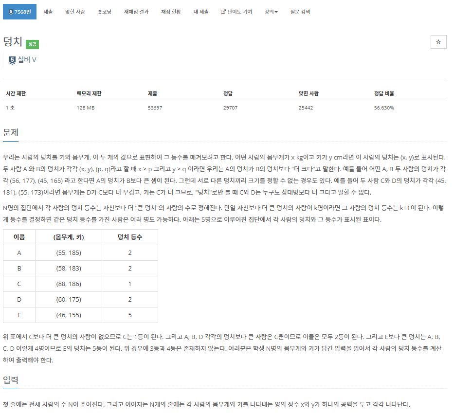 https://www.acmicpc.net/problem/7568