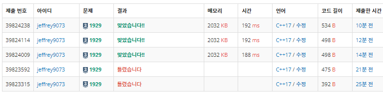 처음에 1,2,3 예외처리안해서 틀림 ㅠ